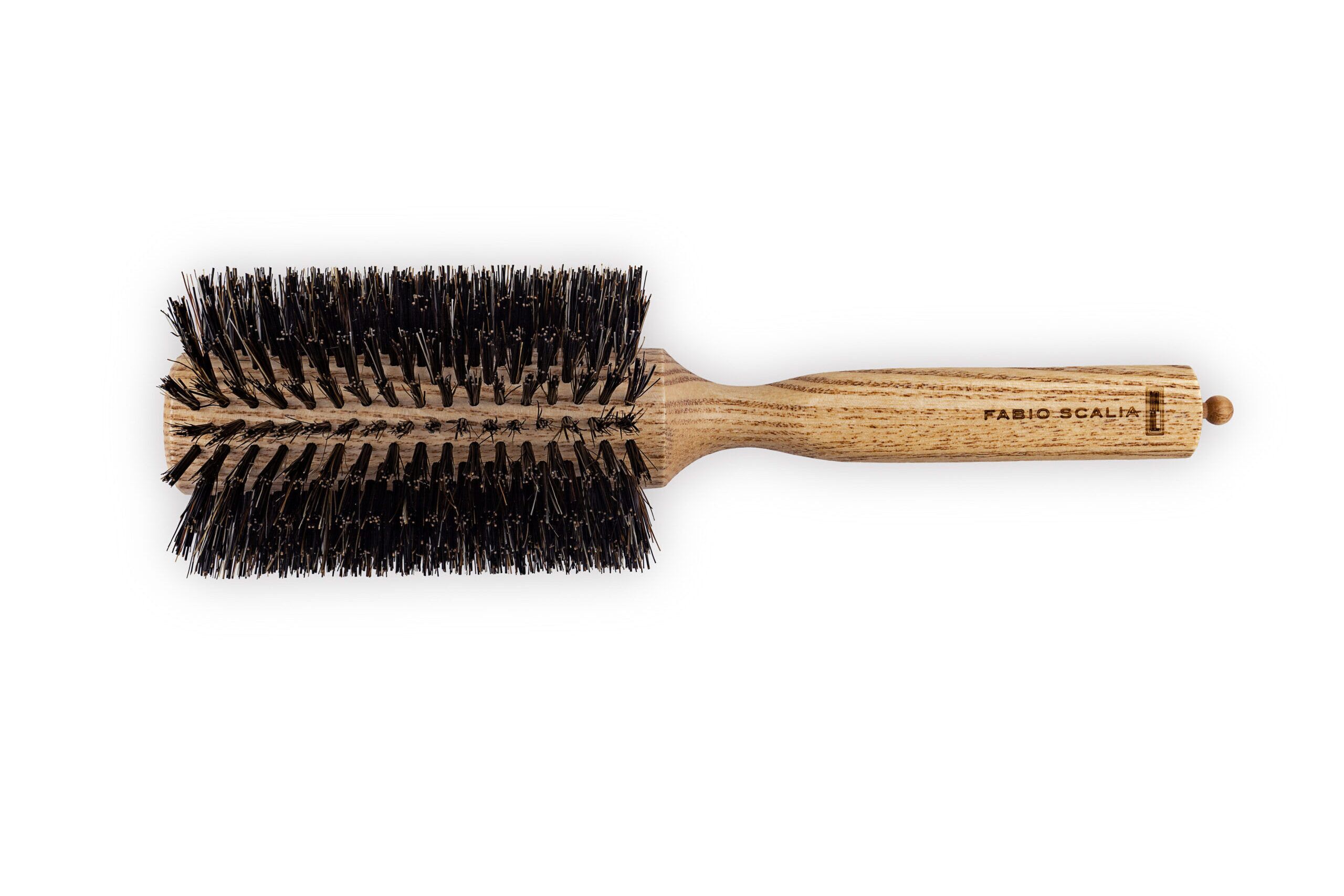Take control with confidence. Designed for curly, coarse and thick hair, La Monica removes frizz and smooths hair, while a retractable pick facilitates blow-drying and styling in sections. Reinforced wild boar bristles are gentle on the hair, pulling curls and frizz straight while minimizing breakage. A triangular shaped handle creates the perfect balance of pull and tension. Ash wood adds flexibility and reduces static with a natural touch.